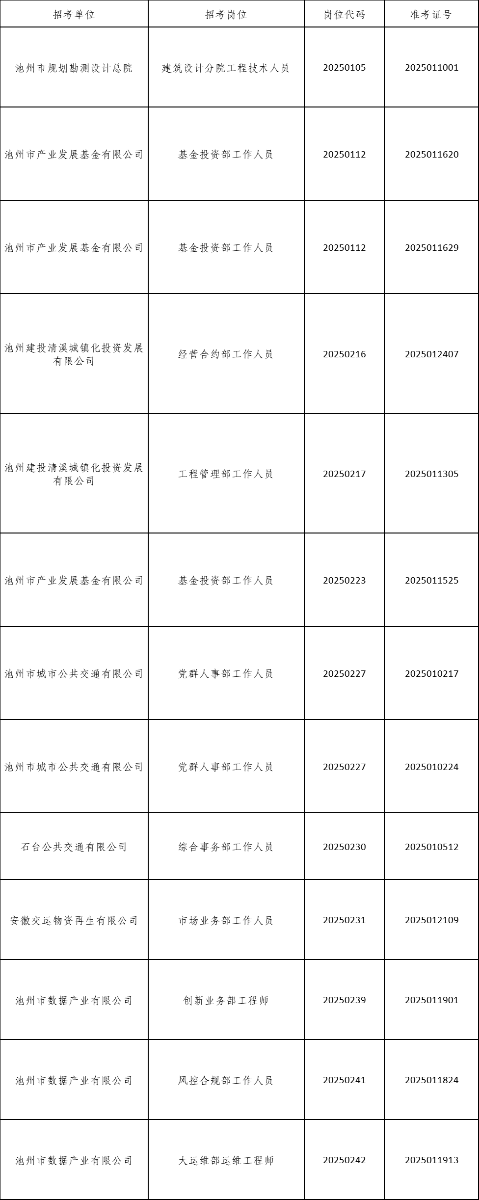 根據(jù)《池州市投資控股集團2025年公開招聘工作人員公告》要求,由于入圍現(xiàn)場資格復(fù)審的考生中有部分人員自動放棄或不合格產(chǎn)生了人員空缺,現(xiàn)按《公告》要求,在報考同崗位的考生中按筆試成績從高分到低分的順序依次遞補,成績出現(xiàn)并列者一并進入資格復(fù)審,現(xiàn)將入圍遞補資格復(fù)審情況公告如下:
