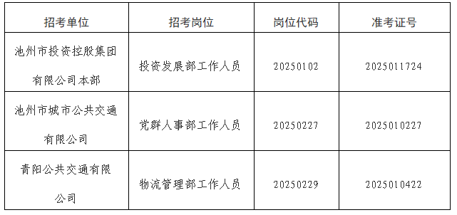 根據(jù)《池州市投資控股集團2025年公開招聘工作人員公告》要求,由于入圍體檢的考生中有部分人員自動放棄或不合格產(chǎn)生了人員空缺?,F(xiàn)按《公告》要求,視崗位情況進行遞補?,F(xiàn)將入圍遞補體檢情況公告如下: