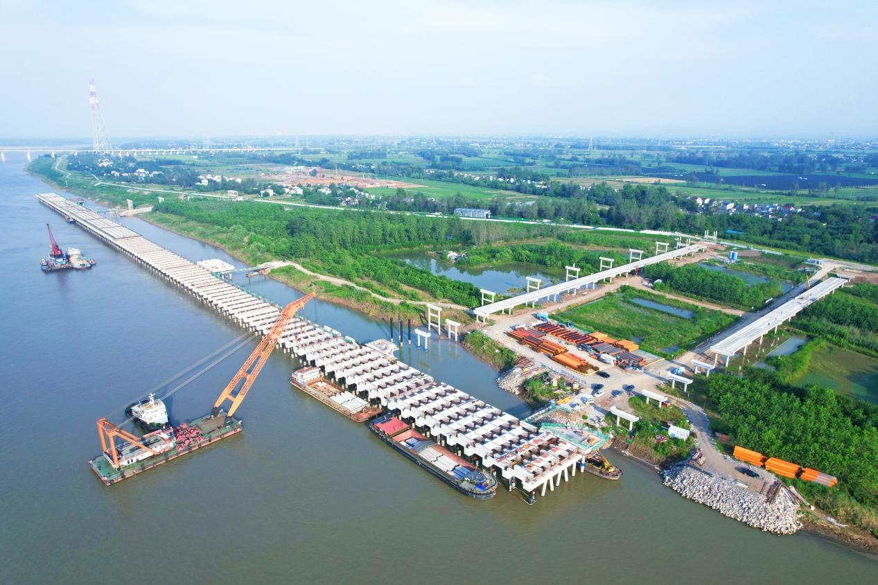 目前烏沙港區(qū)水域部分總體完成57%,前期工作、下橫梁施工、PHC管樁及鋼管樁已施工完成,引橋灌注樁施工124根,完成總量的97%,預(yù)制梁安裝完成74%,預(yù)制板安裝完成53%,上橫梁施工完成53%,水下拋石完成15%。陸域部分:取得省政府建設(shè)用地的批復(fù),設(shè)計(jì)圖紙已編制完成,正在進(jìn)行施工圖審查及推進(jìn)征遷工作。設(shè)備部分:皮帶機(jī)作業(yè)線設(shè)備正在制造,起重機(jī)招標(biāo)文件初稿已編制。電氣部分:已完成技術(shù)規(guī)格書編制工作。
