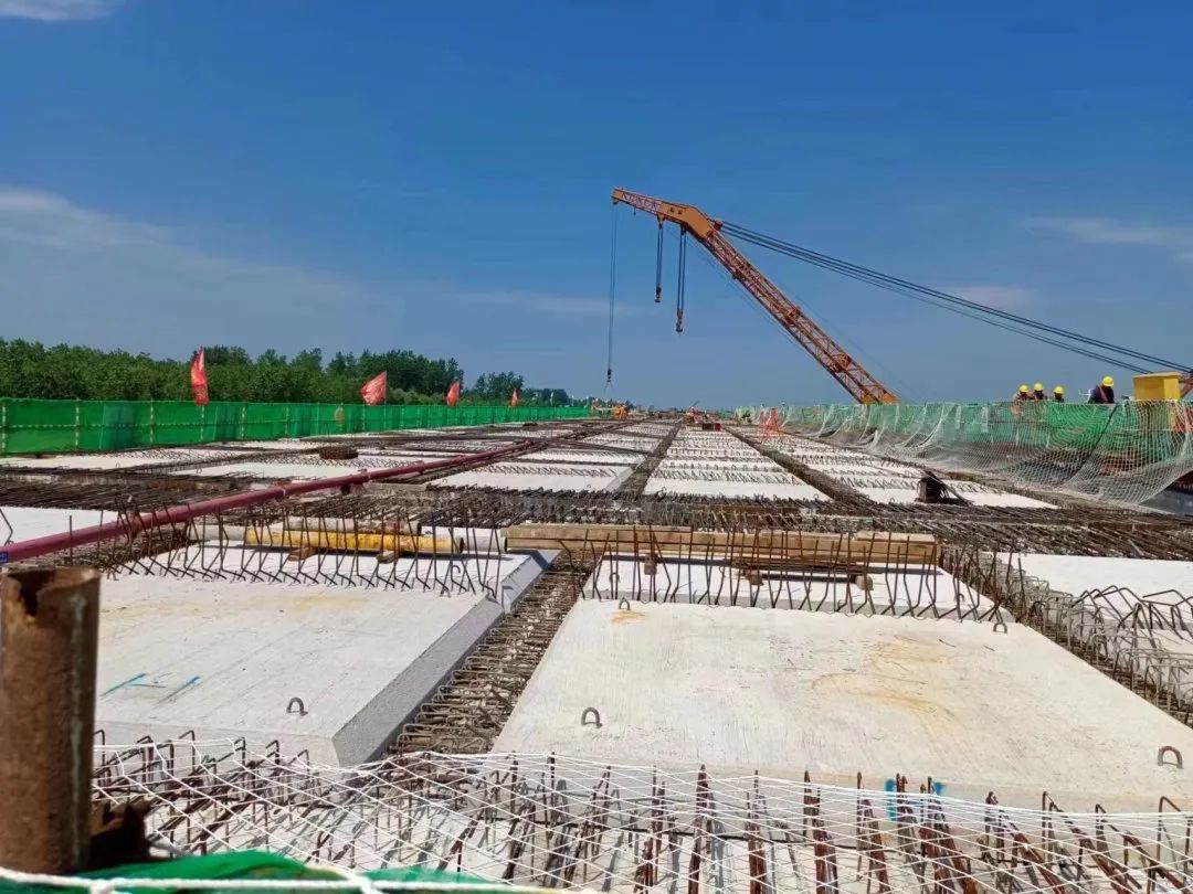 前期工作已完成,PHC管樁及鋼管樁已施工完成,引橋灌注樁施工124根,完成總量的97%,下橫梁施工完成,預(yù)制梁安裝完成84%,預(yù)制板安裝完成70%,上橫梁施工完成61%,現(xiàn)澆面層完成7%,水下拋石完成41%。