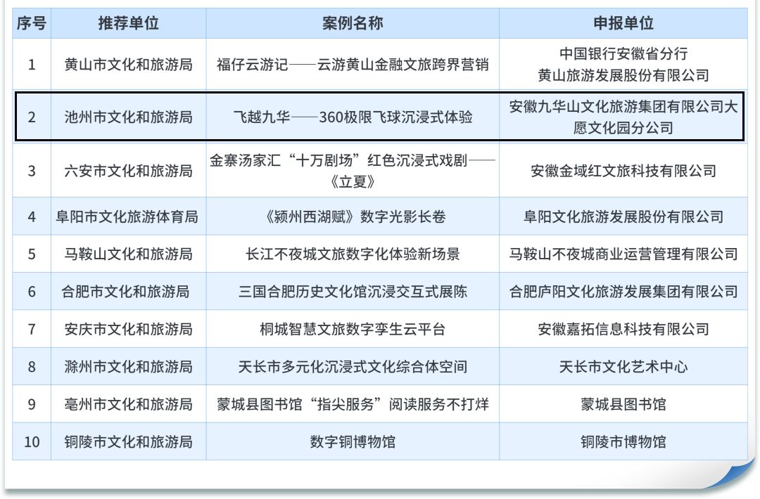 12月26日,安徽省文化和旅游廳公布2023年數(shù)字文旅創(chuàng)新實(shí)踐十佳案例名單,集團(tuán)所屬大愿文化園分公司申報(bào)的項(xiàng)目“飛越九華——360極限飛球沉浸式體驗(yàn)”榜上有名!?。?/p>